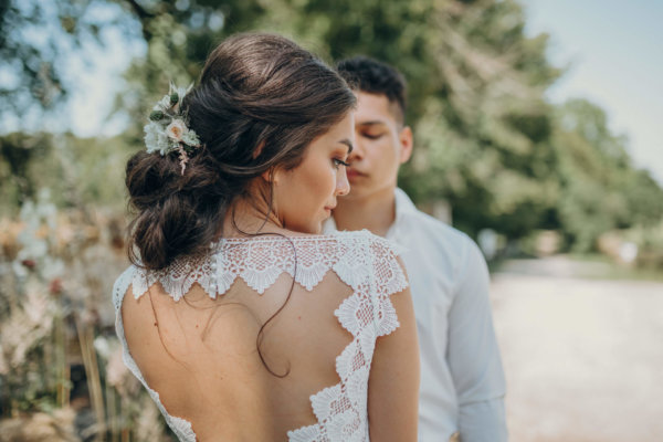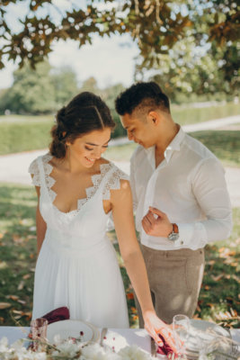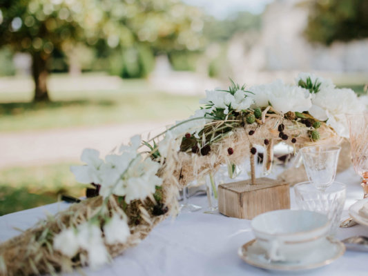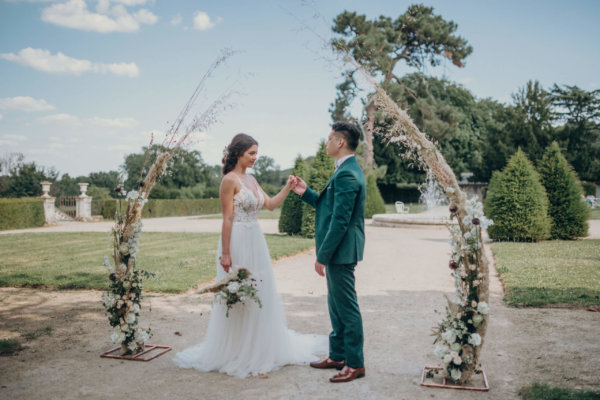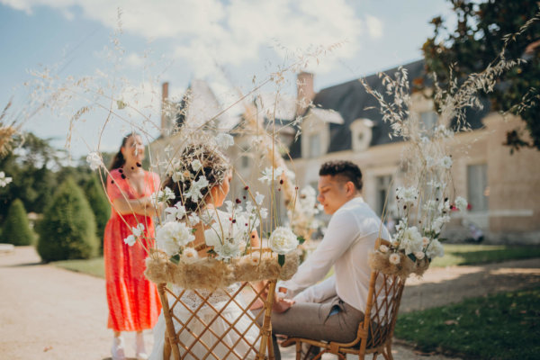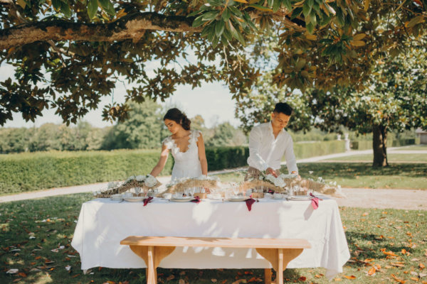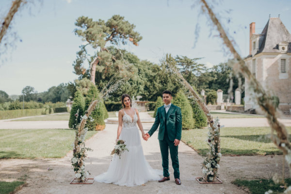 Voici les photographies de la séance inspiration « Mariage au Jardin », réalisée au Château de La Perrière.